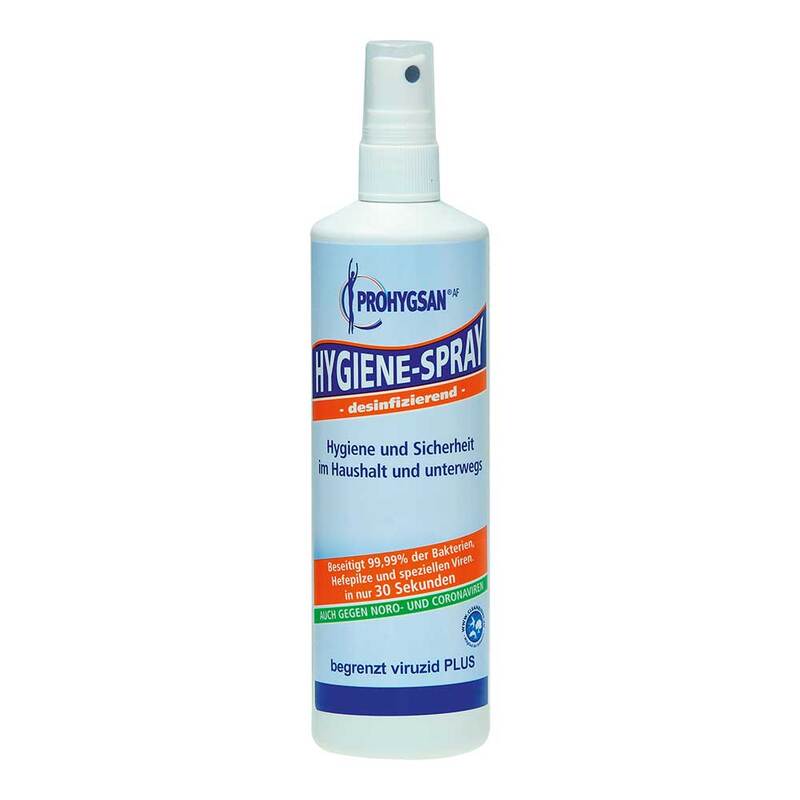 Hygiene im Haushalt und unterwegs, mit dem Prohygsan Hygiene Spray AF rundum geschützt. Beseitigt 99,99 % der Bakterien, Pilze und speziellen Viren.