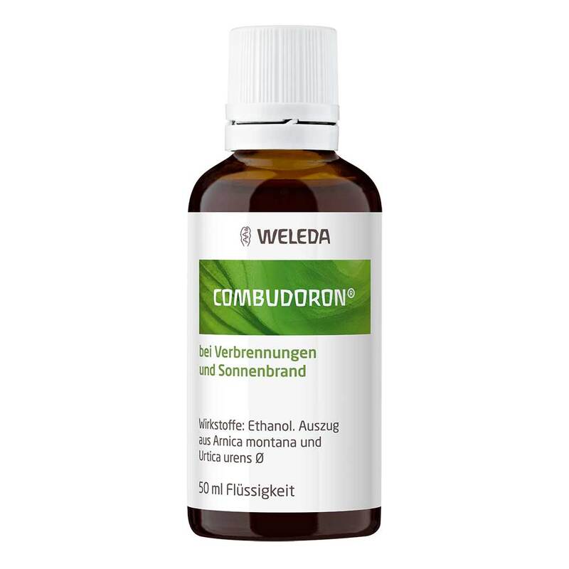 Combudoron® Flüssigkeit Anwendungsgebiete: Gemäß der anthroposophischen Menschen- und Naturerkenntnis. Dazu gehören: Verbrennungen 1. und 2. Grades (Rötung, Schwellungen, Brandblasen), Sonnenbrand und akute Strahlenschäden der Haut; Insektenstiche. Zu Risiken und Nebenwirkungen lesen Sie die Packungsbeilage und fragen Sie Ihre Ärztin, Ihren Arzt oder in Ihrer Apotheke. Weleda AG, Schwäbisch Gmünd