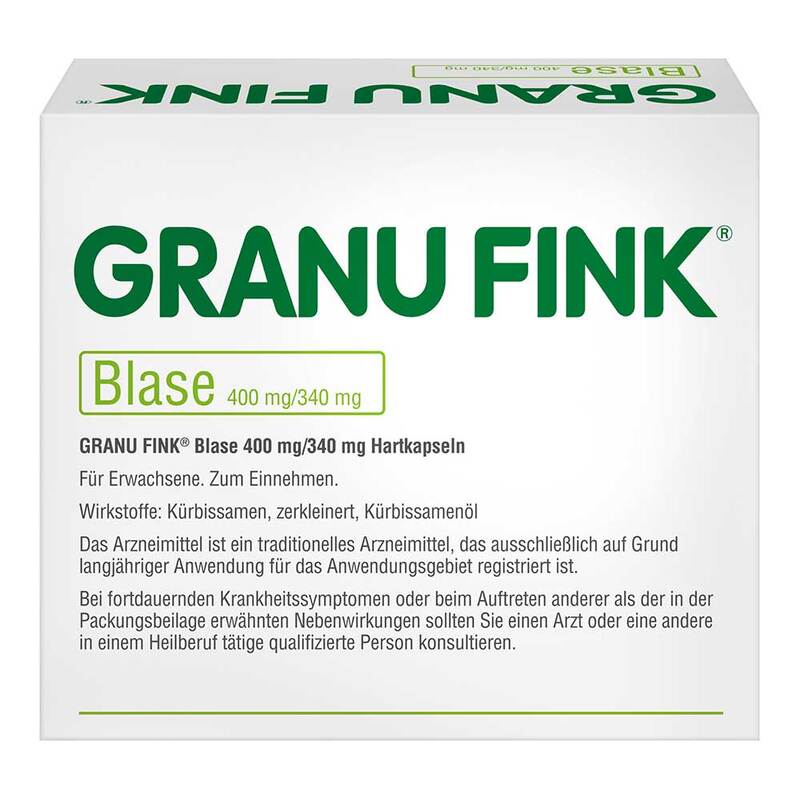 GRANU FINK® BLASE Anwendungsgebiete: Traditionell angewendet zur Stärkung oder Kräftigung der Blasenfunktion. Traditionelles pflanzliches Arzneimittel zur Anwendung z.B. bei Blasenschwa¨che, zur Erhaltung der normalen Blasenfunktion, zur Erleichterung der Blasenentleerung, ausschließlich auf Grund langjähriger Anwendung. Dieses Arzneimittel wird angewendet bei Erwachsenen ab 18 Jahren. Das Vorliegen einer schwerwiegenden Grunderkrankung als Ursache für die Beschwerden muss vor der Behandlung von einem Arzt ausgeschlossen worden sein. Bei fortdauernden Krankheitssymptomen oder beim Auftreten anderer als der in der Packungsbeilage erwa¨hnten Nebenwirkungen sollten Sie einen Arzt oder eine andere in einem Heilberuf ta¨tige qualifizierte Person konsultieren. Zu Risiken und Nebenwirkungen lesen Sie die Packungsbeilage und fragen Sie Ihre Ärztin, Ihren Arzt oder in Ihrer Apotheke.