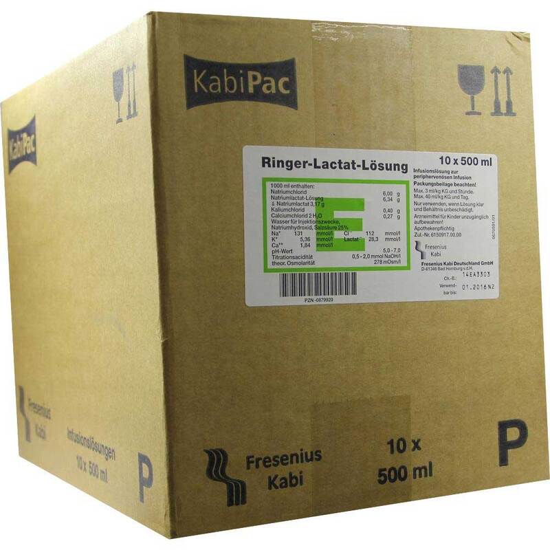 Ringer-Lactat-Lösung ist eine Lösung zur intravenösen Zufuhr (Zufuhr über die Vene) von Flüssigkeit und Elektrolyten.
