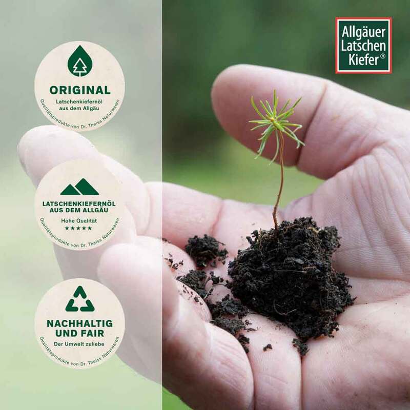 Zur Gewinnung des Latschenkiefernöls werden tausende Pflanzen zunächst sorgsam aufgezogen und anschließend auf über 100 Hektar firmeneigener Flächen im Allgäu ausgepflanzt. Erst nach 12 bis 13 Jahren beginnt die Ernte – nachhaltig und über viele Jahre hinweg. Der gesamte Produktionsprozess unterliegt dabei strengen Qualitätskontrollen, um das Allgäuer Latschenkiefer Gütesiegel zu erhalten – ein Zeichen für Reinheit, Herkunft und geprüfte Qualität.