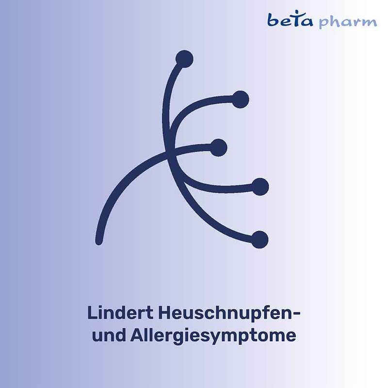 Cetirizin beta® Filmtabletten. Wirkstoff: Cetirizindihydrochlorid. Anw.: Zur Behandlung von Krankheitszeichen bei allerg. Erkrankungen, wie chron. Nesselsucht mit Beschwerden, z. B. Juckreiz, Quaddelbildung, Rötung d. Haut; chron. allerg. Schnupfen; Juckreiz bei chron. Nesselsucht u. bei atopischer Dermatitis (Neurodermitis) mit Beschwerden wie Rötung d. Haut; Heuschnupfen mit Beschwerden, wie z. B. Niesen, Nasenlaufen, Nasenjucken, Nasenverstopfung, Rötung bzw. Jucken d. Augen sowie Tränenfluss; asthmoide Zustände allerg. Herkunft - als unterstützende Maßnahme zur Unterdrückung entspr. Beschwerden. Warnhinw.: Enth. Lactose. Bitte nehmen Sie Cetirizin beta® daher erst nach Rücksprache mit Ihrem Arzt ein, wenn Ihnen bekannt ist, dass Sie unter einer Unverträglichkeit gegenüber bestimmten Zuckern leiden. Zu Risiken und Nebenwirkungen lesen Sie die Packungsbeilage und fragen Sie Ihre Ärztin, Ihren Arzt oder in Ihrer Apotheke. betapharm Arzneimittel GmbH, 86156 Augsburg.