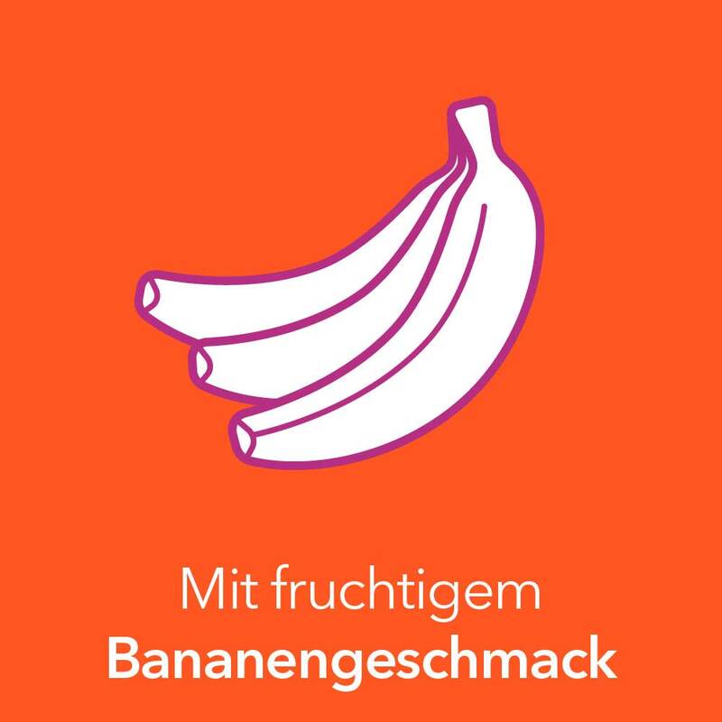 Sonstige Bestandteile: Sorbitol-Lösung 70% (kristallisierend), Glycerol 85%, Propylenglycol, Natriumacetat-3-Wasser, Methyl-4-hydroxybenzoat, Propyl-4-hydroxybenzoat, Saccharin-Natrium, Essigsäure zur pH-Wert-Einstellung, Bananen-Aroma, Benzylalkohol, gereinigtes Wasser