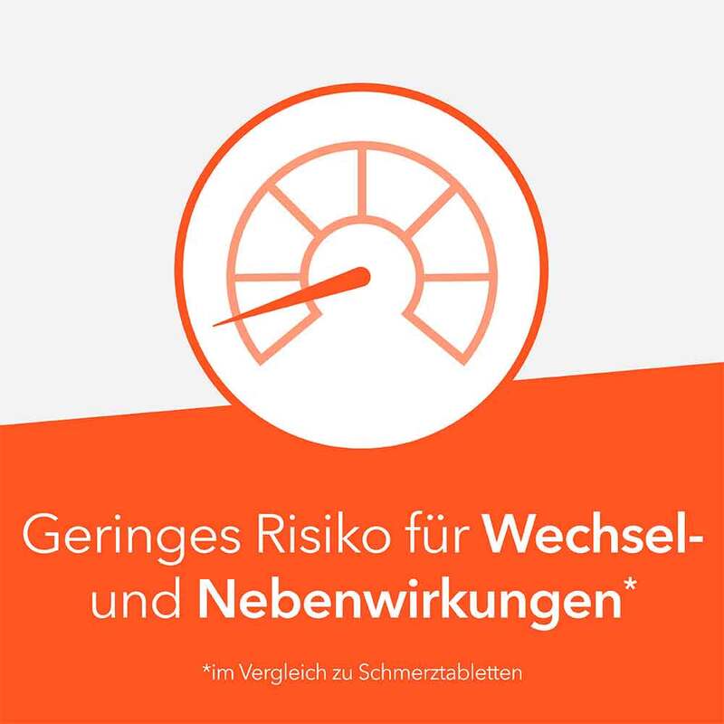 - Geringes Risiko für Neben- und Wechselwirkungen im Vergleich zu Schmerztabletten