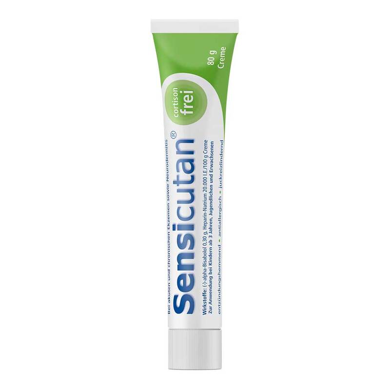 Sensicutan®, Creme. Wirkstoffe: (-)-alpha-Bisabolol, Heparin-Natrium. Anwendungsgebiete: Zur Behandlung von entzündlichen, nicht infektiösen, stark juckenden und allergischen Hauterkrankungen z.B. akuten und chronischen Ekzemen, atopischer Dermatitis (Neurodermitis) bei Erwachsenen, Jugendlichen und Kindern ab 3 Jahren. Warnhinweis: Enthält Sorbinsäure, Cetyl- und Stearylalkohol. Packungsbeilage beachten. Zu Risiken und Nebenwirkungen lesen Sie die Packungsbeilage und fragen Sie Ihre Ärztin, Ihren Arzt oder in Ihrer Apotheke.