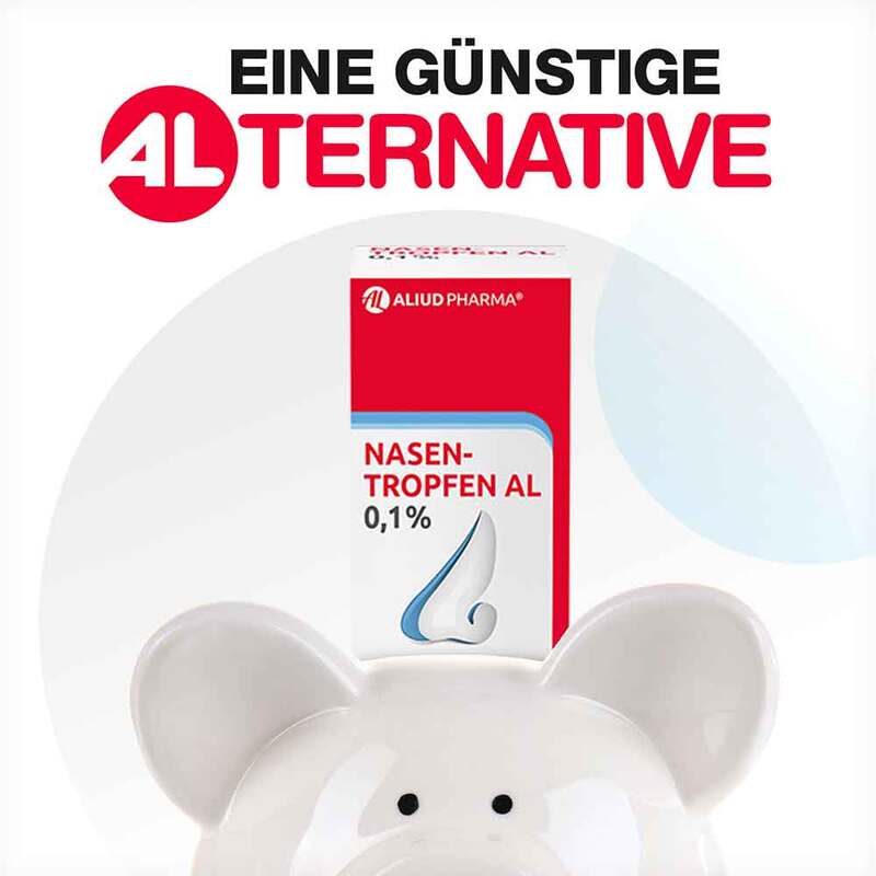 NASENTROPFEN AL 0,1%. Xylometazolinhydrochlorid 1,0 mg/ml Lösung. Zur Anwendung bei Kindern ab 6 Jahren und Erwachsenen. Wirkstoff: Xylometazolinhydrochlorid. Zur Abschwellung der Nasenschleimhaut bei Schnupfen, anfallsweise auftretendem Fließschnupfen (Rhinitis vasomotorica), allergischem Schnupfen (Rhinitis allergica). Zur Erleichterung des Sekretabflusses bei Entzündung der Nasennebenhöhlen sowie bei Katarrh des Tubenmittelohres in Verbindung mit Schnupfen. Enthält Benzalkoniumchlorid. Hinweis: Sollte nicht länger als 7 Tage angewendet werden, es sei denn auf ärztliche Anordnung. Zu Risiken und Nebenwirkungen lesen Sie die Packungsbeilage und fragen Sie Ihre Ärztin, Ihren Arzt oder in Ihrer Apotheke. ALIUD PHARMA® GmbH, Postfach 1380, 89146 Laichingen. Stand: März 2021