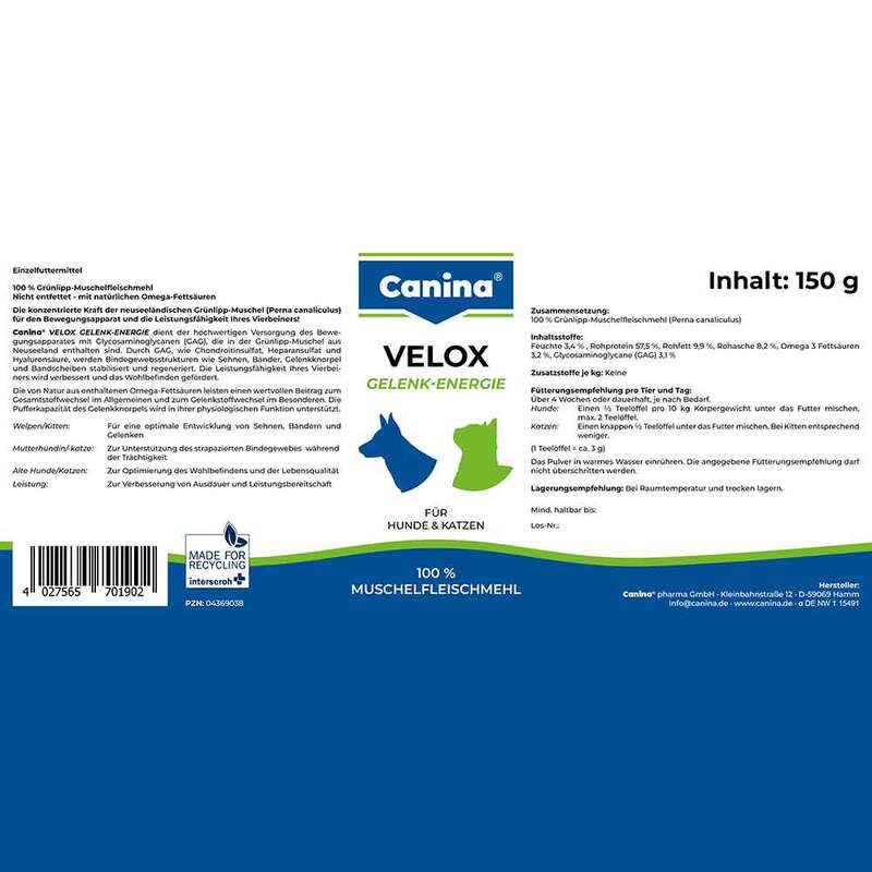 Velox Gelenkenergie 100% für Hunde und Katzen, 150 g