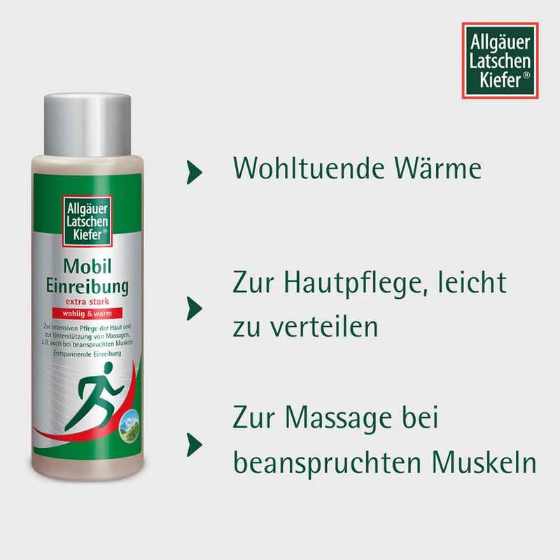 Die Allgäuer Latschenkiefer Mobil Einreibung extra stark wohlig & warm ist ein Kosmetikum, das eine angenehme Wärme verleiht und so Massagen und Einreibungen unterstützt.