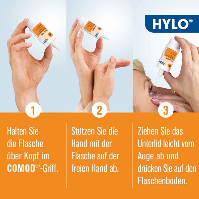 HYLO PARIN® sollte individuell nach Ihrer Befindlichkeit und der Empfehlung Ihrer Augenärztin bzw. -arztes dosiert werden. Im Allgemeinen tropfen Sie 3 bis 6mal täglich 1 Tropfen HYLO PARIN® in den Bindehautsack jeden Auges. Sollten Sie HYLO PARIN® häufiger (z.B. mehr als 10mal täglich) und bei stärkeren Beschwerden anwenden, lassen Sie Ihre Augen regelmäßig augenärztlich untersuchen.