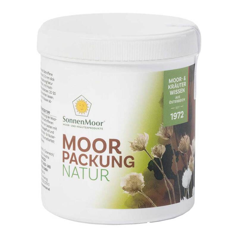Moorpackung Natur für beanspruchte Gelenke, unreiner Haut und als Gesichtsmaske - ein Naturprodukt des österreichischen Familienunternehmens SonnenMoor, tätig seit 1972. Das Moor für dieses Moorprodukt wird aus dem Leopoldskroner Moor bei Salzburg gewonnen und in Anthering hergestellt. Zahlreiche Mineralstoffe, Spurenelemente und Huminsäuren der Moorpackung beleben die behandelten Körperstellen, sodass das Gewebe und die Muskeln stärker durchblutet werden, und so für mehr Wohlbefinden sorgen. Aufgrund der vitalisierenden Eigenschaften findet dieses Moorprodukt auch als Gesichtsmaske Verwendung.