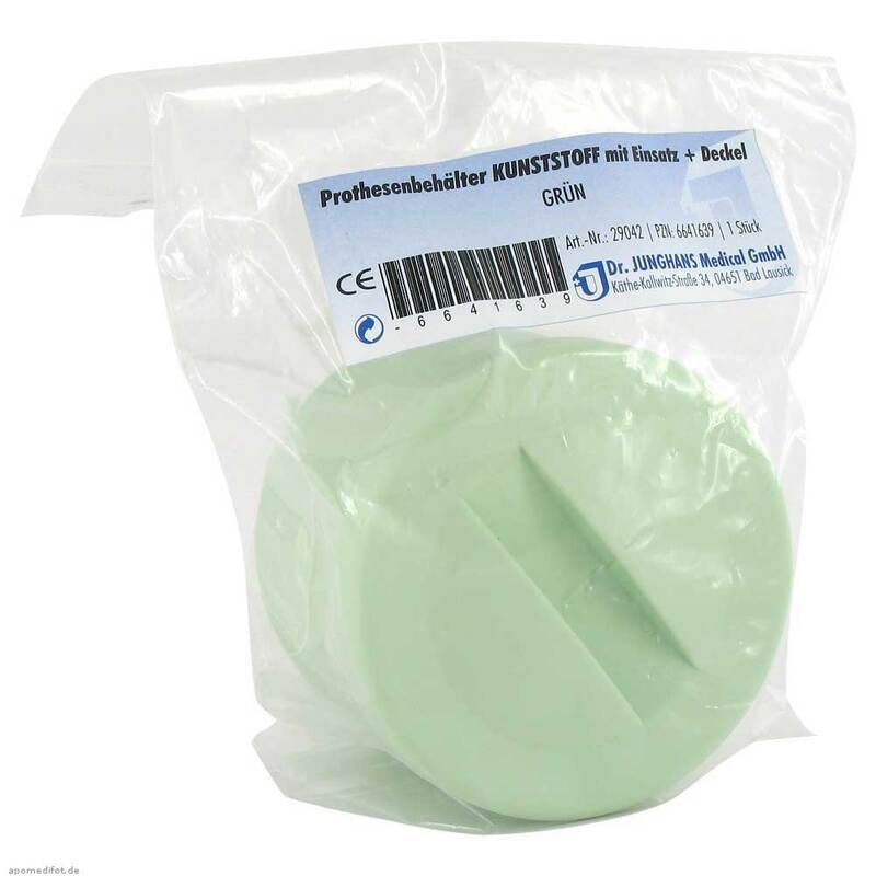 PROTHESENBEHAELTER gruen m.Deckel u.Einsatz