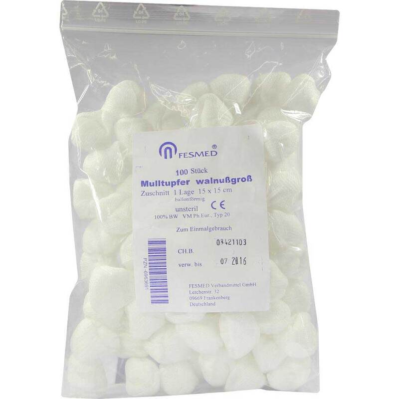 Mulltupfer 15x15cm walnussgroß ballonf.unsteril, 100 St