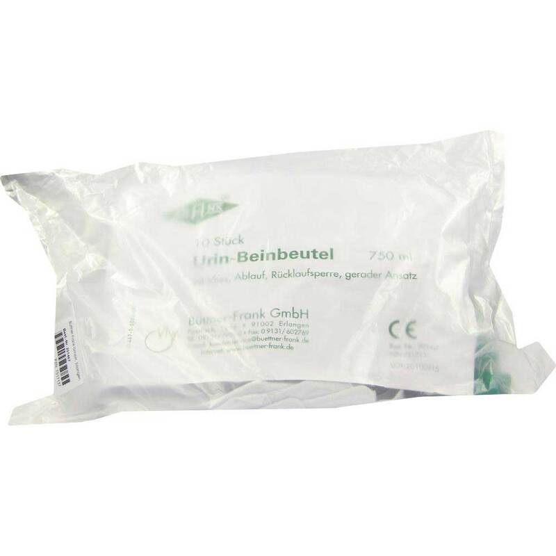 Urin Beinbeutel mit Rücklaufsperre und Ablauf mit Vlies gerader Ansatz 750ml, 10 St