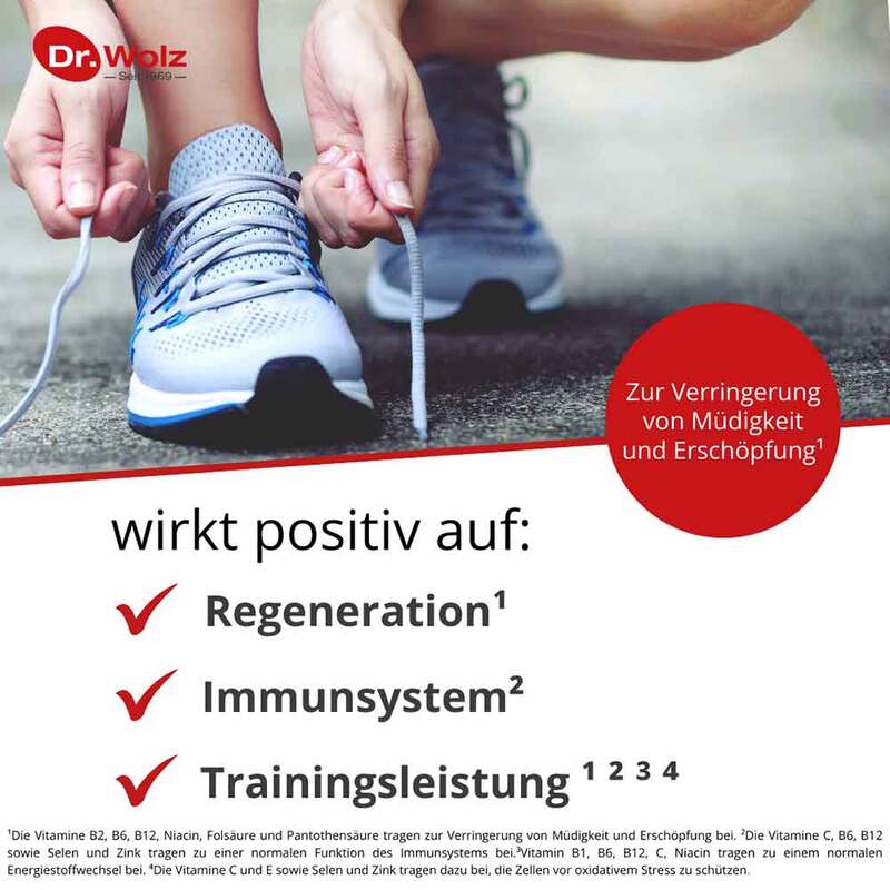 hefezellen 59 %, Fruchtsaftkonzentrat (Orange, Grapefruit, Zitrone, Birne, Sanddorn, Aronia, Cranberry, hagebutte, Heidelbeere, Holunder, Schwarze Johannesbeere), Apfelsaft aus Apfelsaftkonzentrat, Gemüsesaftkonzentrat (Karotte, Rote Bete, Topinambur), Honig, Borretschöl, Magnesiumsalze der Zitronensäure, Vitamin E, Zinkhefe (Hefe, Zinkcitrat), Acerolasaftpulver, Nicotinamid, Selenhefe, natürliches Aroma, Pantothenat, Vitamin B12, Vitamin B6, Vitamin B2, Vitamin B1, Biotin.