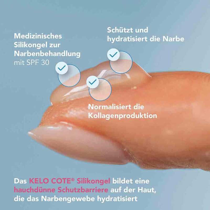 Durch UV-Strahlen kann der Wundheilungsprozess und das empfindliche Narbengewebe negativ beeinflusst werden. Hyperpigmentierungen und auch sonnenbedingte Rötungen können die Folge sein. Aus diesem Grund sollten frische Narben vor Sonne und UV-Strahlen geschützt werden. KELO-COTE® Narbengel UV mit Lichtschutzfaktor 30 wurde speziell entwickelt, um Narben vor den ungünstigen Auswirkungen der Sonne zu schützen. Der Sonnenschutz sorgt dafür, dass die Narbe vor UV-Strahlung geschützt wird und somit dunkle Pigmentierungen verhindert werden. KELO-COTE® Narbengel UV ist ideal für Gesicht, Hals, Hände, Oberkörper und andere Hautpartien, die der Sonne ausgesetzt sind.