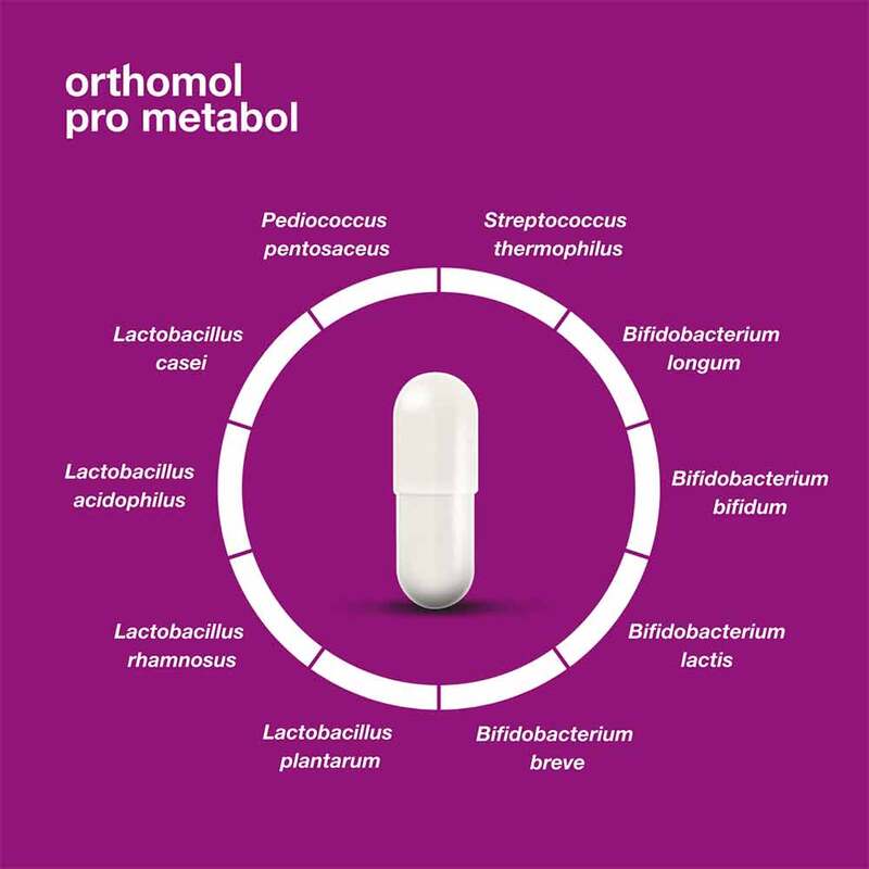 Orthomol Pro Metabol ist ein Nahrungsergänzungsmittel. Es enthält eine Kombination ausgewählter Darmsymbionten und Zink.*