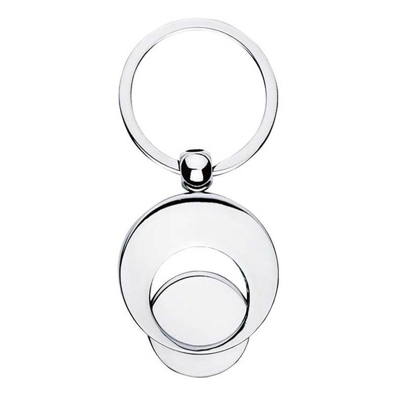 Ihr neuer Schlüsselanhänger aus Metall in einem attraktiven silber glänzenden Design enthält einen abnehmbaren Einkaufswagenchip. Somit sind Sie auch bei spontanen Einkäufen ohne Geldmünzen in der Tasche gerüstet.