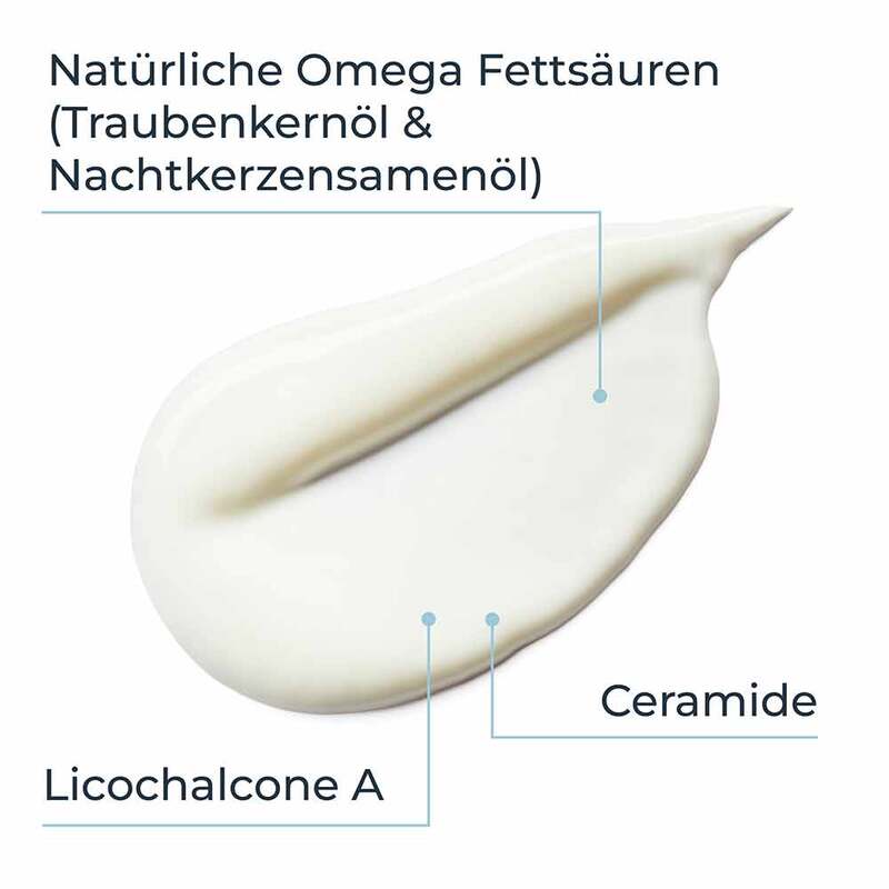 Mit einer Kombination der Wirkstoffe aus konzentrierten Omega-6-Fettsäuren und beruhigendem Licochalcone A unterstützt die Lotion die Hautregeneration und hilft dabei, die natürliche Barrierefunktion der Haut zu stärken. Außerdem wird die Körperhaut elastischer und bei regelmäßiger Anwendung werden Juckreiz und Spannungsgefühl wirksam gelindert.