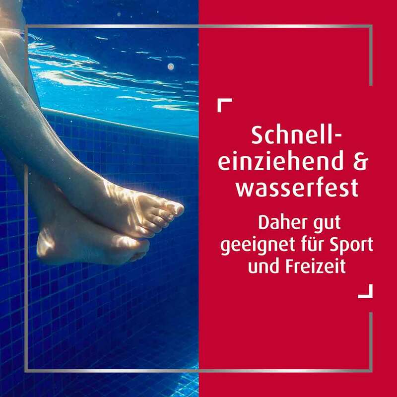 Sie lindert schnell Symptome wie Juckreiz, Rötungen und Brennen. Dank der Breitbandwirkung des Wirkstoffs Bifonazol werden alle relevanten Erreger bekämpft und zusätzlich Entzündungen gehemmt. Durch ihre Wasserfestigkeit eignet sich die Creme optimal für Sport und Freizeit.
