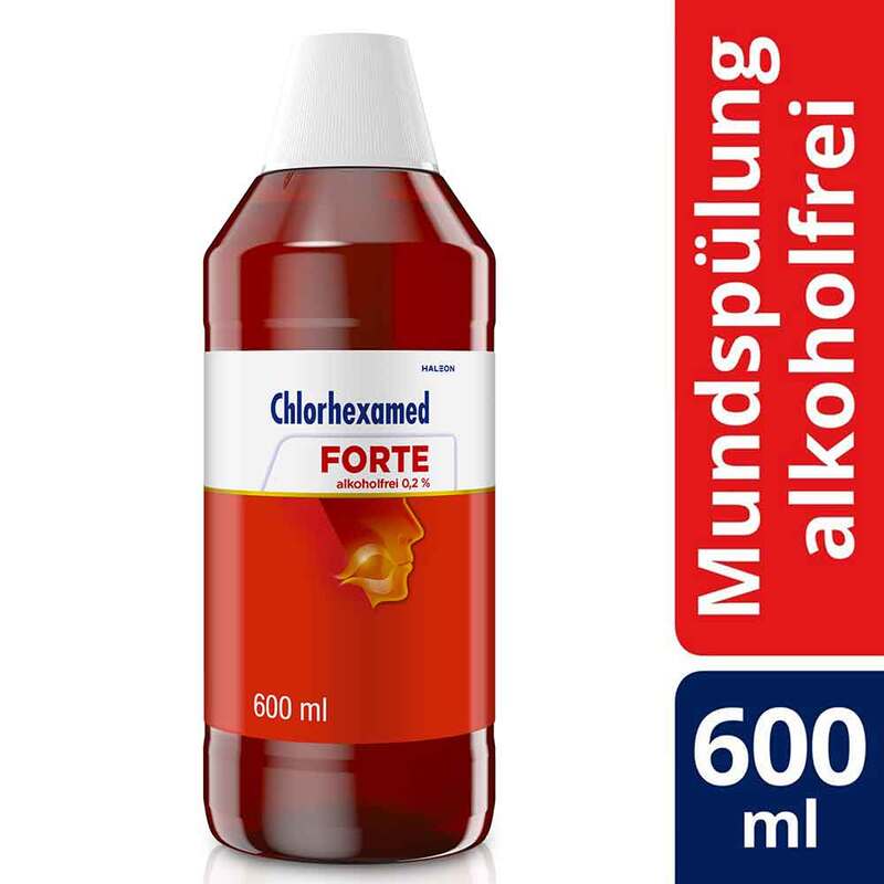 Chlorhexamed FORTE alkoholfrei 0,2 %. Lösung zur Anwendung in der Mundhöhle. Wirkstoff: Chlorhexidinbis(D-gluconat). Anwendungsgebiete: Antiseptische Lösung zur vorübergehenden Keimzahlverminderung im Mundraum; zur Unterstützung der Heilungsphase nach parodontalchirurgischen Eingriffen durch Hemmung der Plaque-Bildung; zur vorübergehenden unterstützenden Behandlung bei bakteriell bedingten Zahnfleischentzündungen (Gingivitis); bei eingeschränkter Mundhygienefähigkeit. Warnhinweis: Enthält Pfefferminzaroma und Macrogolglycerolhydroxystearat (Ph. Eur.). Apothekenpflichtig. Stand: 01/2020. Zu Risiken und Nebenwirkungen lesen Sie die Packungsbeilage und fragen Sie Ihre Ärztin, Ihren Arzt oder in Ihrer Apotheke.