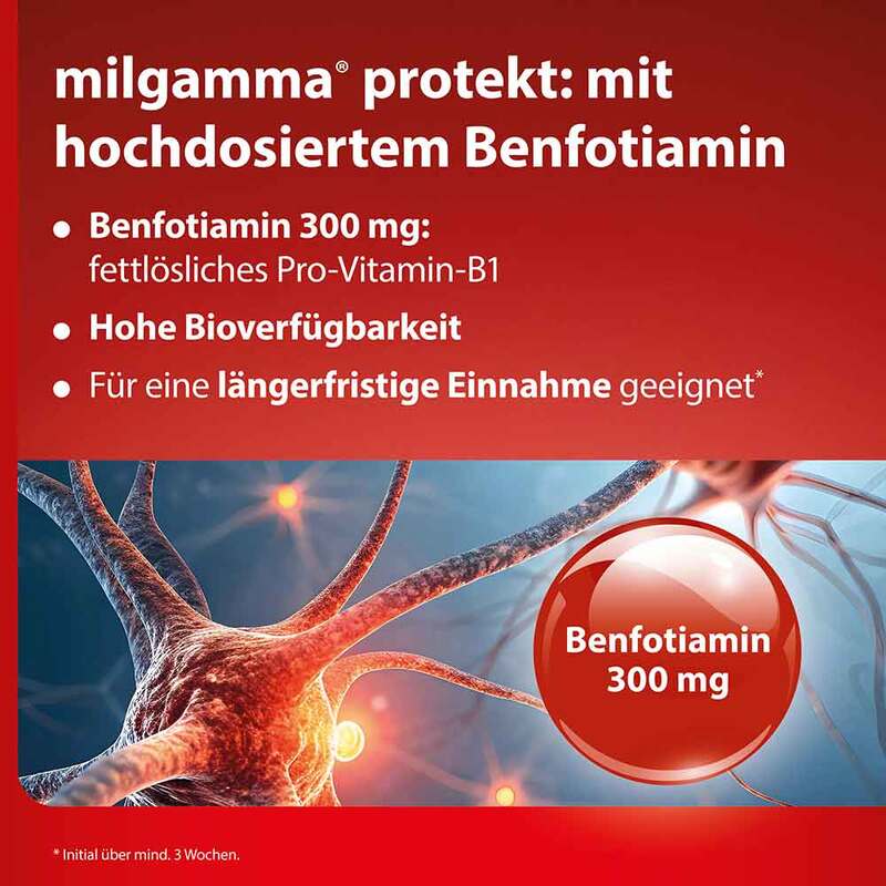 - Zur Behandlung von Neuropathien infolge eines Vitamin-B1-Mangels sollte die Einnahme von milgamma® protekt mindestens über 3 Wochen erfolgen.