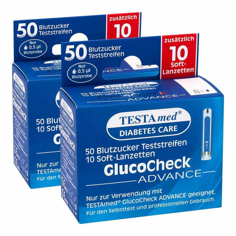 TESTAmed® GlucoCheck ADVANCE Teststreifen mit 10 Soft-Lanzetten, 2x1 P