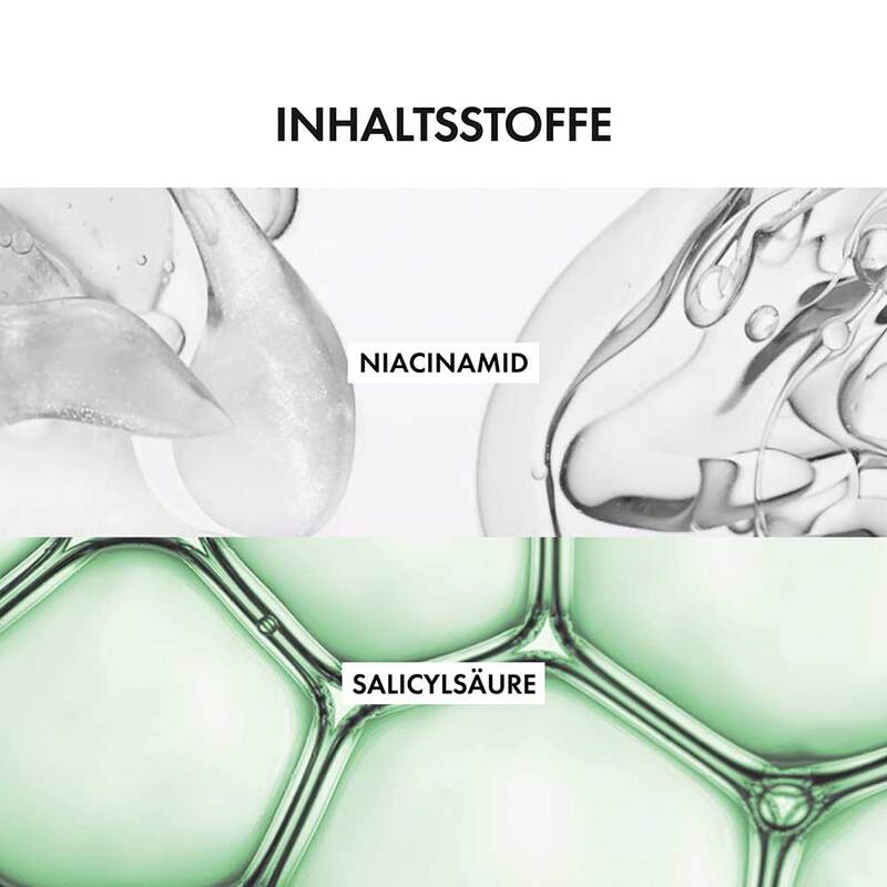 Die Formel mit Niacinamid und Salicylsäure wirkt anti-inflammatorisch und mildert erweiterte Poren und Mitesser. Zusätzlich wird der Melanin-Transfer gehemmt, was der Neuentstehung von Pickelmalen entgegenwirkt.