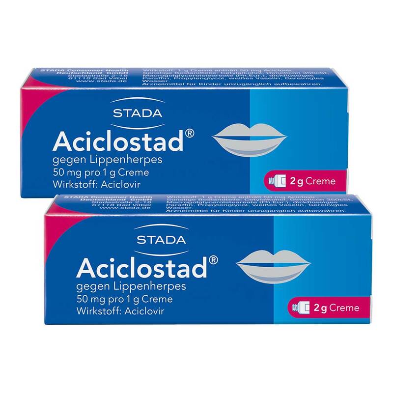Aciclostad® gegen Lippenherpes 50 mg pro 1 g CremeWirkstoff: Aciclovir. Zur lindernden Behandlung von Schmerzen und Juckreiz bei häufig wiederkehrenden Herpesinfektionen mit Bläschenbildung im Lippenbereich (rezidivierender Herpes labialis). Hinweis: Creme bereits bei den ersten Anzeichen (Brennen, Jucken, Spannungsgefühl, Rötung) anwenden. Enthält: Cetylalkohol und Propylenglycol. Zu Risiken und Nebenwirkungen lesen Sie die Packungsbeilage und fragen Sie Ihre Ärztin, Ihren Arzt oder in Ihrer Apotheke. STADA Consumer Health Deutschland GmbH, Stadastraße 2–18, 61118 Bad Vilbel Stand: August 2020