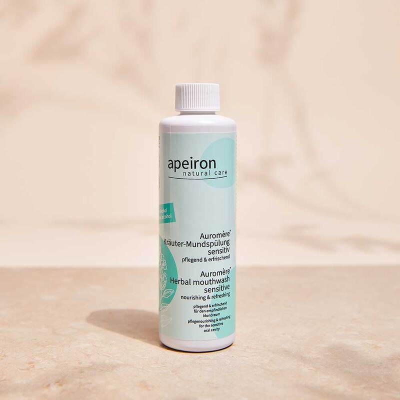 Apeiron Auromere Kräuter-Mundspülung sensitiv ist eine alkoholfreie Rezeptur. Sie besteht aus ayurvedischen Pflanzenextrakten, die unsere tägliche Mundreinigung optimal unterstützen und ergänzen.