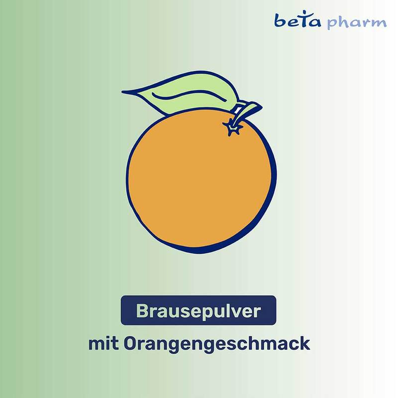 Sonstige Bestandteile: Hochdisperses Siliciumdioxid, Saccharin-Natrium, Orangen-Aroma (enthält: Aromastoffe und Aromaextrakte, Maltodextrin, arabisches Gummi, all-rac-alpha-Tocopherol) und Zitronen-Limetten-Aroma (enthält: Aromaextrakte, Maltodextrin, Mannitol (Ph.Eur), D-Glucono-1,5-lacton, Sorbitol (Ph.Eur.), arabisches Gummi, hochdisperses Siliciumdioxid)