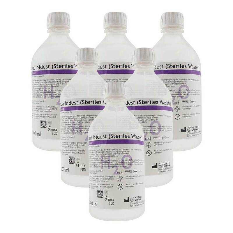 Aqua Bidestillata Spüllösung, 6X1000 ml