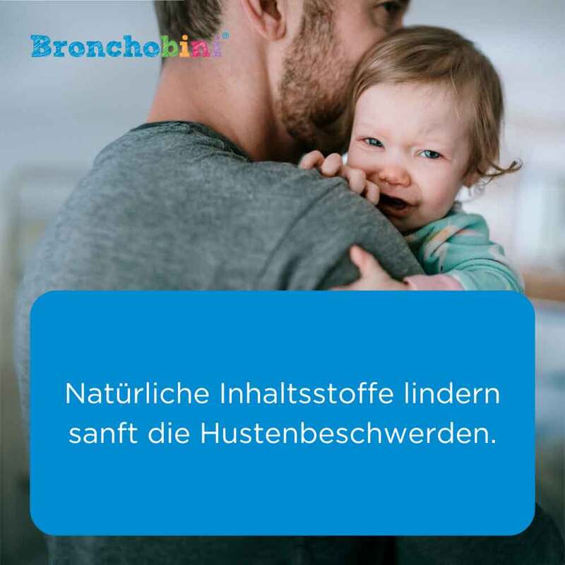 Bis zu 10-mal pro Jahr ein grippaler Infekt: Bei Kindern ist das in den ersten Lebensjahren leider normal. Denn Babys kommen mit einem unausgereiften Immunsystem zur Welt – ihre Abwehrkräfte müssen erst noch trainiert werden. Und auch vom Kleinkind- bis Grundschulalter gilt: Wenn die Kleinen von Husten und Erkältungsbeschwerden geplagt werden, ist schnelle und sanfte Hilfe gefragt. Bronchobini® lindert Erkältungsbeschwerden, die durch Entzündungen der Atemwege entstehen, und unterstützt die Besserung typischer Symptome wie Reiz- und Krampfhusten – auch bei Kleinkindern und Babys ab 6 Monaten.