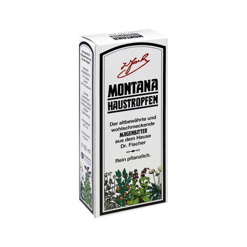 100 ml MONTANA HAUSTROPFEN enthalten einen alkoholischen Auszug (48 Vol.%) aus folgenden Heilpflanzen: 1 g Hopfenzapfen 2 g Enzianwurzel 1 g Ceylonzimtrinde 2 g Bitterorangenschale 1 g Kümmel 3 g Löwenzahnwurzel 0,06 g Ätherisches Pfefferminzöl 1 g Rotes SandelholzAufbewahrungshinweise