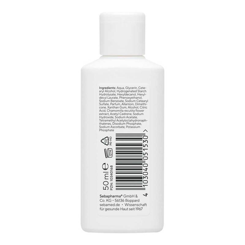 Aqua, Glycerin, Cetearyl Alcohol, Hydrogenated Starch Hydrolysate, Hexyldecanol, Hexyldecyl Laurate, Phenoxyethanol, Sodium Benzoate, Sodium Cetearyl Sulfate, Parfum, Allantoin, Dimethicone, Xanthan Gum, Alcohol, Citric Acid, Chamomilla recutita flower extract, Acetyl Cedrene, Sodium Hydroxide, Sodium Acetate, Tetramethyl Acetyloctahydronaphthalenes, Disodium Phosphate, Sodium Ascorbate, Potassium Phosphate