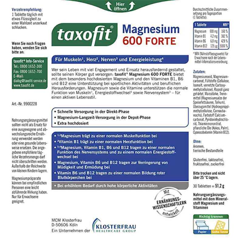 Taxofit Magnesium 600 Forte Depot Tabletten, 30 St