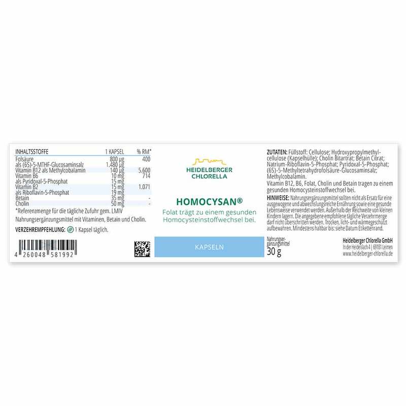 Cellulose (Arbocel®), Kapselhülle: Hypromellose (rein vegetarisch), (6S)-5-Methyltetrahydrofolsäure-Glucosaminsalz, Methylcobalamin.