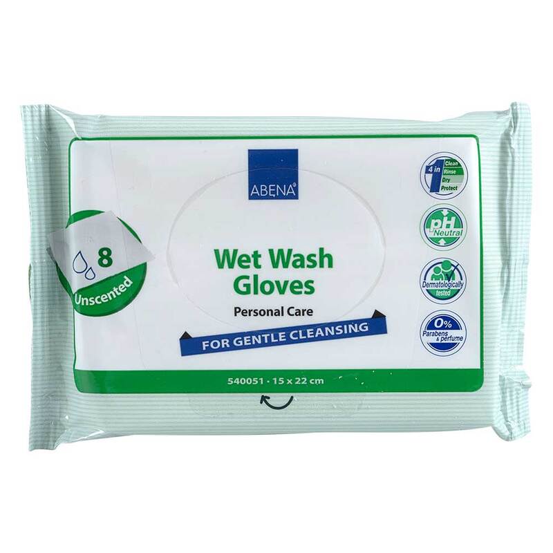 Abena feuchte Einmalwaschhandschuhe ohne Parfüm, 8 St