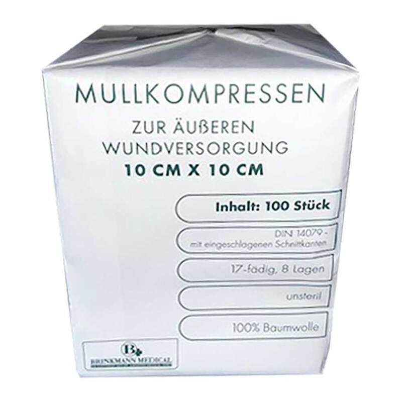 Mullkompressen 10x10 cm unsteril 8fach, 100 St