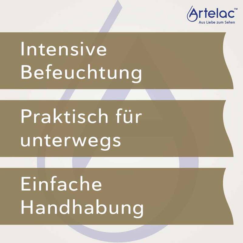 Artelac® Complete EDO® Augentropfen beruhigen trockene Augen zielgerichtet, indem die Defizite des natürlichen Tränenfilms und der Augenoberfläche mit bereits einem Tropfen rundum sicher gut versorgt werden. Die enthaltenden Lipide schützen den Tränenfilm vor einer vermehrten Verdunstung, die natürlichen Feuchtigkeitsspender Hyaluronsäure (0,24 %) und Glycerin binden Feuchtigkeit, das Carbomer befeuchtet und bindet zusätzlich Wasser. Anwender erleben eine umgehende und intensive, langanhaltende Linderung ihrer Symptome.