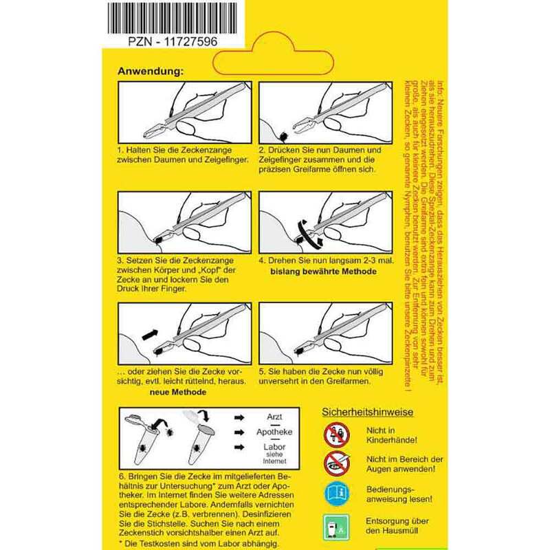 Die Zeckenzange aus geriffeltem Chirurgenstahl ist ideal geeignet für die Entfernung von kleinen und großen Zecken.