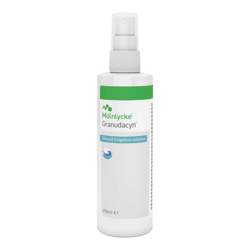 Lösung zum Reinigen, Befeuchten und SpülenDie enthaltene hypochlorige Säure (HOCl), sowie die geringe Osmolarität der Lösung, sorgen für eine sichere antimikrobielle Konservierung und machen Granudacyn zu einer zuverlässigen Wundspüllösung. Die Vermehrung von gram+ und gram Bakterien (inkl. MRSA, ORSA, VRSA, VRE), Viren, Hefen und bakteriellen Sporen wird in der Lösung zuverlässig verhindert.