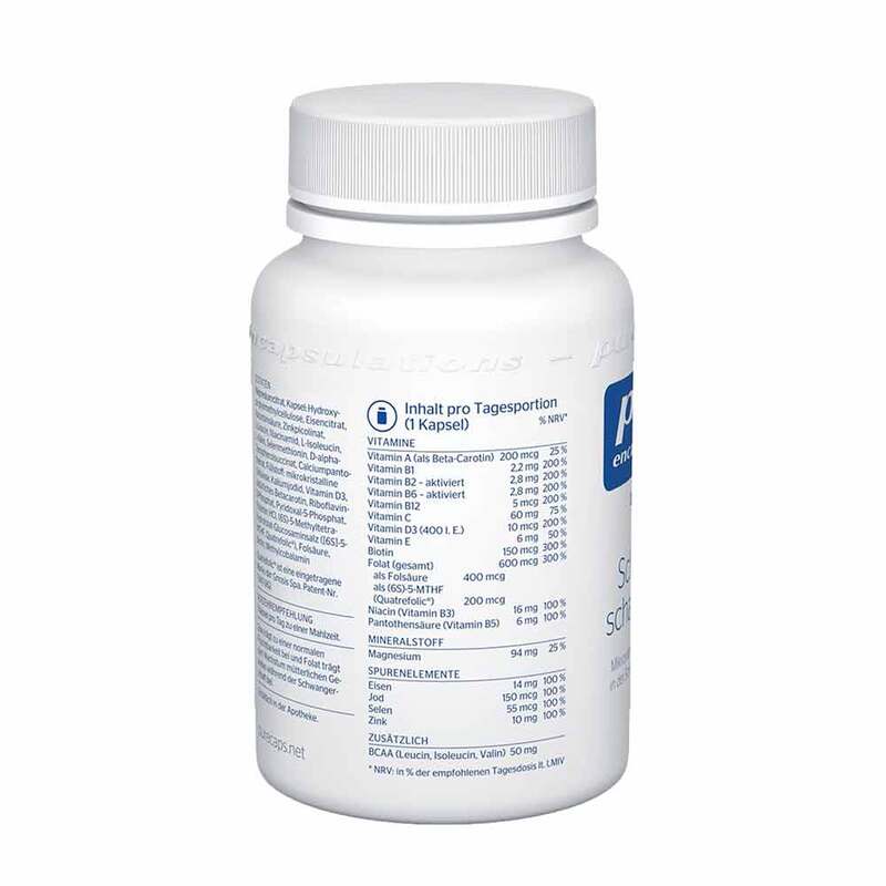Ein optimaler Mikronährstoffstatus ist für Frauen mit Kinderwunsch sowie in der Schwangerschaft und Stillzeit von großer Bedeutung. Die Schwangerschafts-Formel ist ein speziell abgestimmtes Vitalstoffpräparat, das nach modernsten wissenschaftlichen Erkenntnissen für den erhöhten Bedarf während Kinderwunsch, Schwangerschaft und Stillzeit entwickelt wurde. Die Formel trägt zum allgemeinen Wohlbefinden bei.