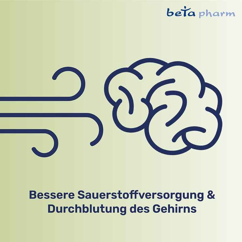 Gingobeta® 40 mg Filmtabletten. Wirkstoff: Ginkgo-biloba-Blätter-Trockenextrakt. Anw.: Gingobeta® ist ein pflanzliches Arzneimittel zur Verbesserung einer altersbedingten kognitiven Beeinträchtigung und der Lebensqualität bei leichter Demenz. Warnh.: Ent. Lactose und Glucose. Bitte nehmen Sie dieses Arzneimittel erst nach Rücksprache mit Ihrem Arzt ein, wenn Ihnen bekannt ist, dass Sie unter einer Unverträglichkeit gegenüber bestimmten Zuckern leiden. Zu Risiken und Nebenwirkungen lesen Sie die Packungsbeilage und fragen Sie Ihre Ärztin, Ihren Arzt oder in Ihrer Apotheke.