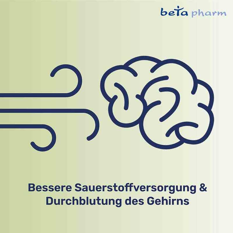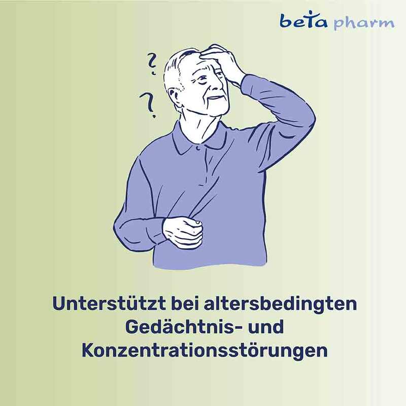 Gingobeta® 80 mg Filmtabletten. Wirkstoff: Ginkgo-biloba-Blätter-Trockenextrakt. Anw.: Gingobeta® ist ein pflanzliches Arzneimittel zur Verbesserung einer altersbedingten kognitiven Beeinträchtigung und der Lebensqualität bei leichter Demenz. Warnh.: Ent. Lactose und Glucose. Bitte nehmen Sie dieses Arzneimittel erst nach Rücksprache mit Ihrem Arzt ein, wenn Ihnen bekannt ist, dass Sie unter einer Unverträglichkeit gegenüber bestimmten Zuckern leiden. Zu Risiken und Nebenwirkungen lesen Sie die Packungsbeilage und fragen Sie Ihre Ärztin, Ihren Arzt oder in Ihrer Apotheke.