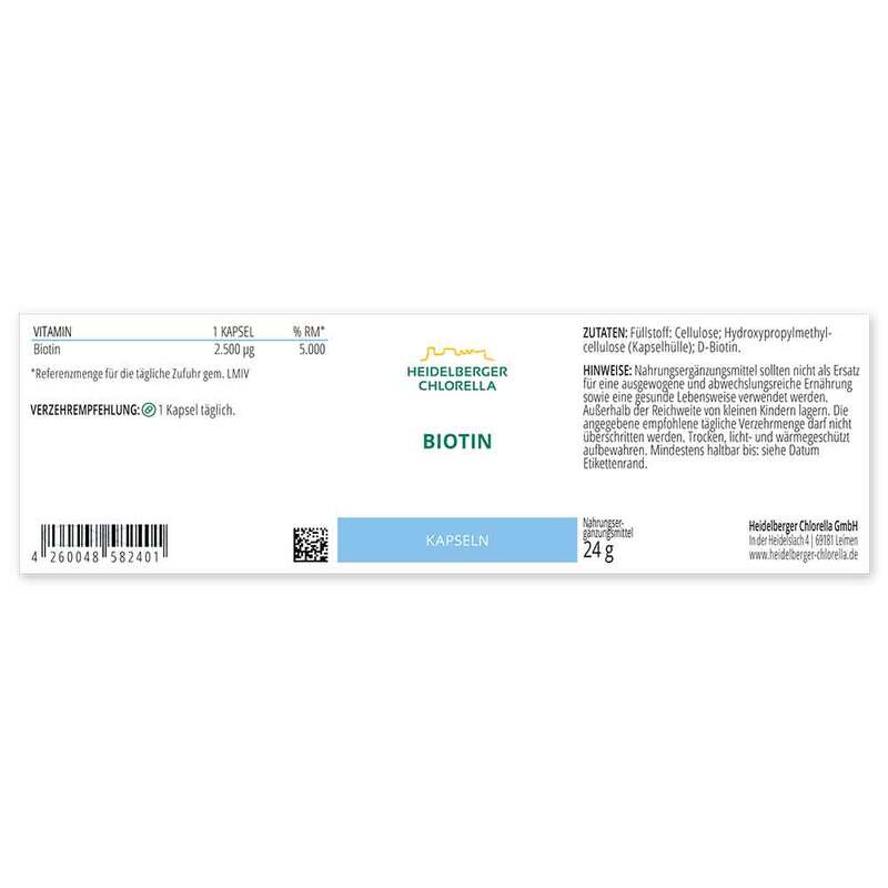 Füllstoff: Cellulose; Hydroxypropylmethylcellulose (Kapselhülle); D-Biotin.