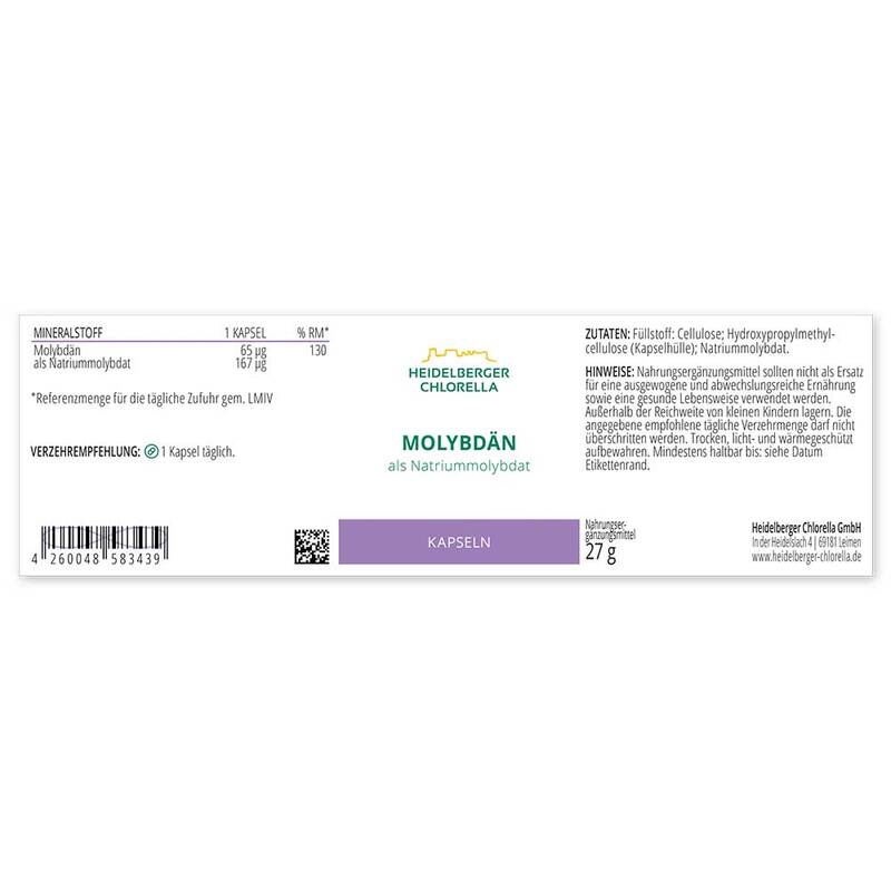 Füllstoff: Cellulose; Hydroxypropylmethylcellulose (Kapselhülle); Natriummolybdat.