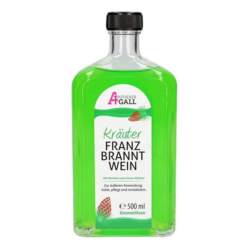 Franzbranntwein Apotheker Gall s wird aus reinem Menthol-Franzbranntwein und einer Kombination hochwertiger aetherischer Öle hergestellt.