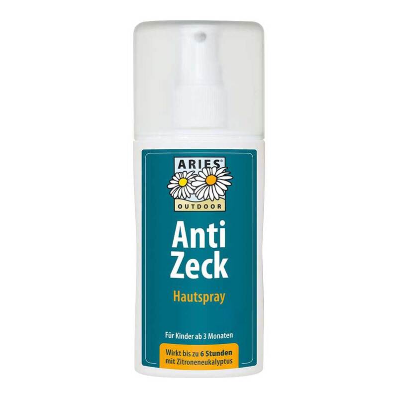 Das ARIES® Anti Zeck ist ein zeckenabwehrendes Hautspray mit einem Wirkstoff, der aus den Blättern des Zitronen-Eukalyptusbaums gewonnen wird. Zecken werden bis zu 6 Stunden ferngehalten.