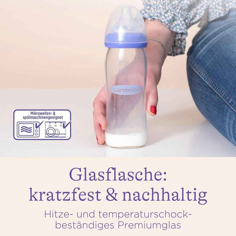 Lansinoh Glas Weithalsflasche 160 ml mit Sauger S, 1 St