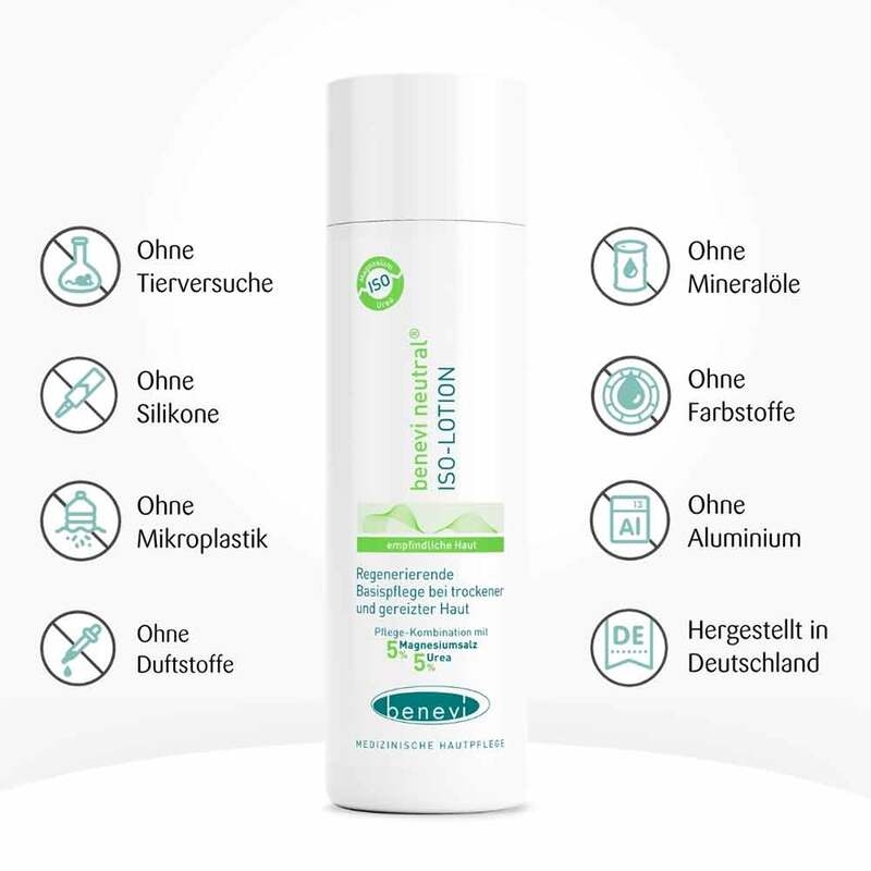 Benevi Neutral ISO-Lotion ist eine Feuchtigkeitspflege bei trockener, schuppender Haut.